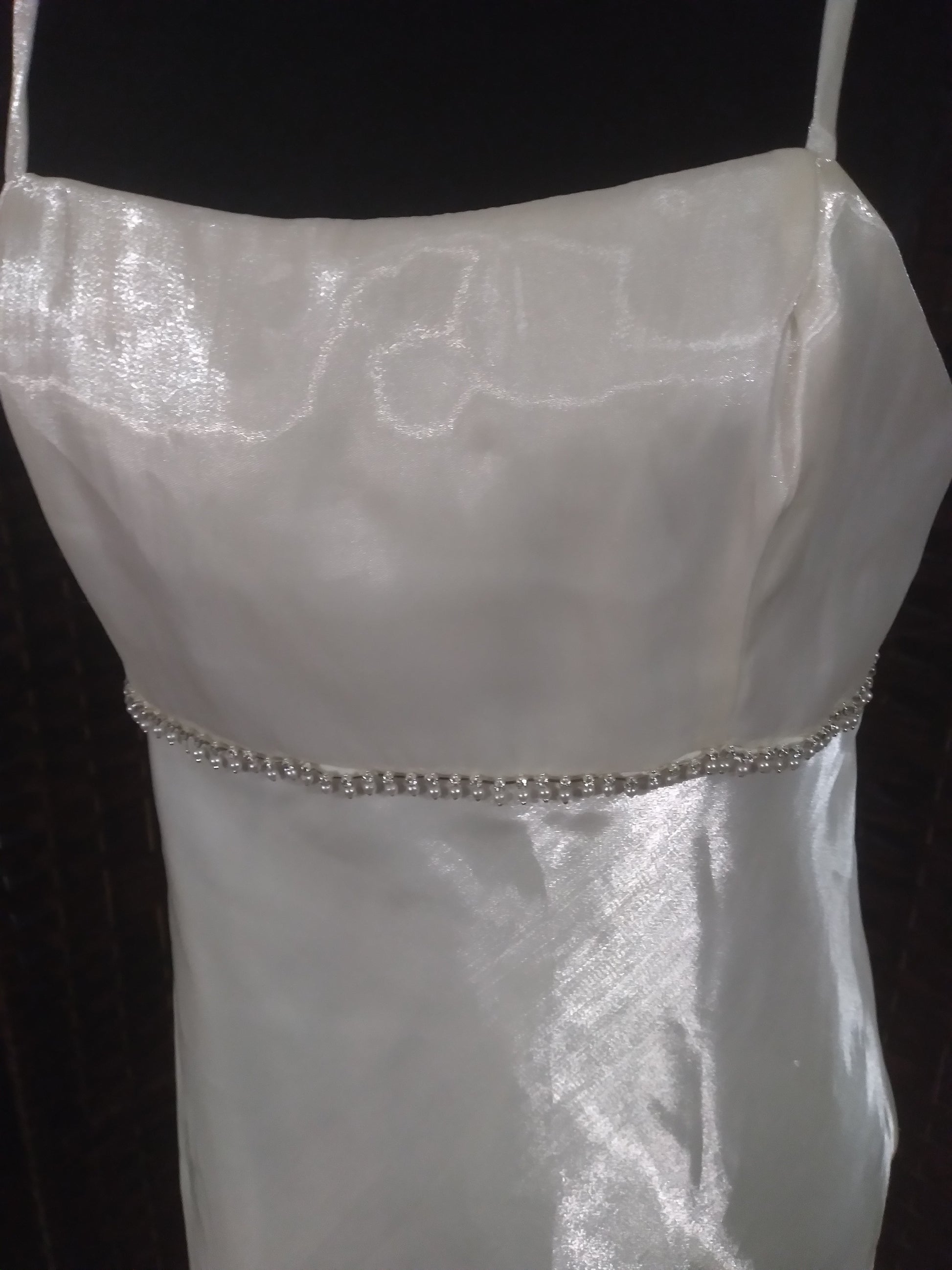 This Ivory dress/ with jewels of pearls and diamonds at the bodice and is in size XL fully lined and true to size